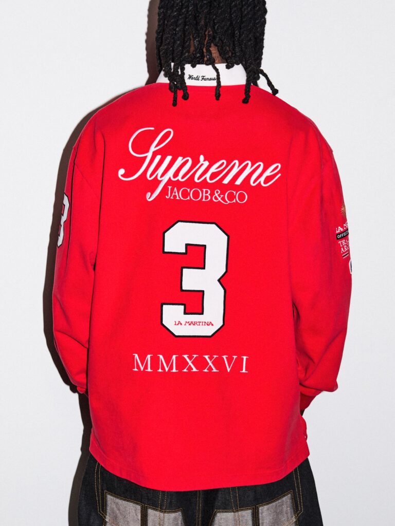Esta colaboración representa un hito: es la primera vez que una marca latinoamericana colabora con Supreme. La estética de las prendas rompe con el minimalismo moderno para volver a las raíces de la marca argentina.